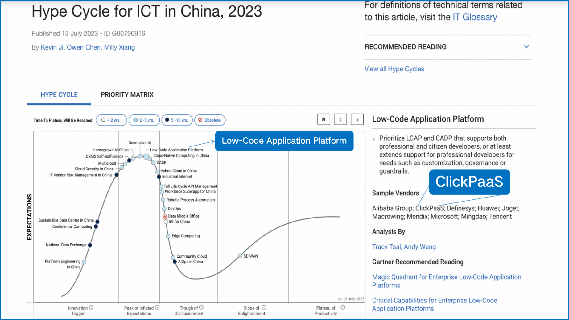 Gartner《2023中国ICT技术成熟度曲线》报告发布,ng28注册平台入口入选低代码平台代表厂商